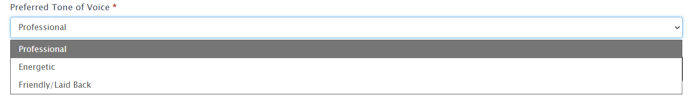 Select your Preferred Tone of Voice: Professional, Energetic, or Friendly/Laid Back.