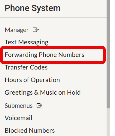 Select Forwarding Phone Numbers from the menu on the left.