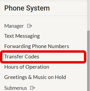 Navigate to Transfer Codes in the menu on the left.