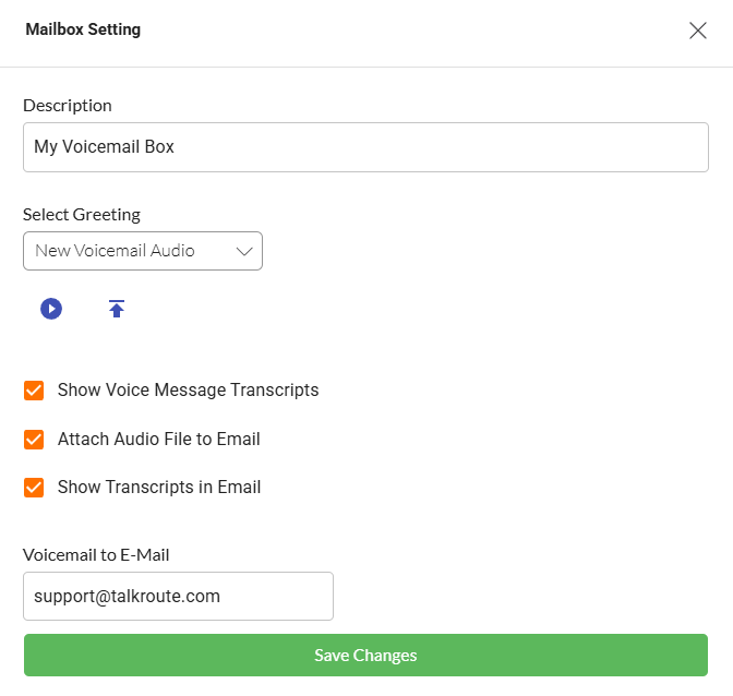 Voicemail transcription converts your voicemail messages into text format. Transcripts can be viewed in the Talkroute desktop and web applications through History and Reporting, in the voicemail area of the mobile app, or included in your email notifications.