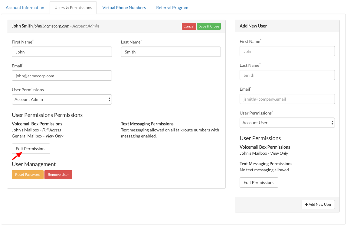 Once text messaging is enabled for a virtual phone number, it cannot be fully disabled through the control panel. However, you can effectively stop text messaging activity by removing user access and turning off email notifications.