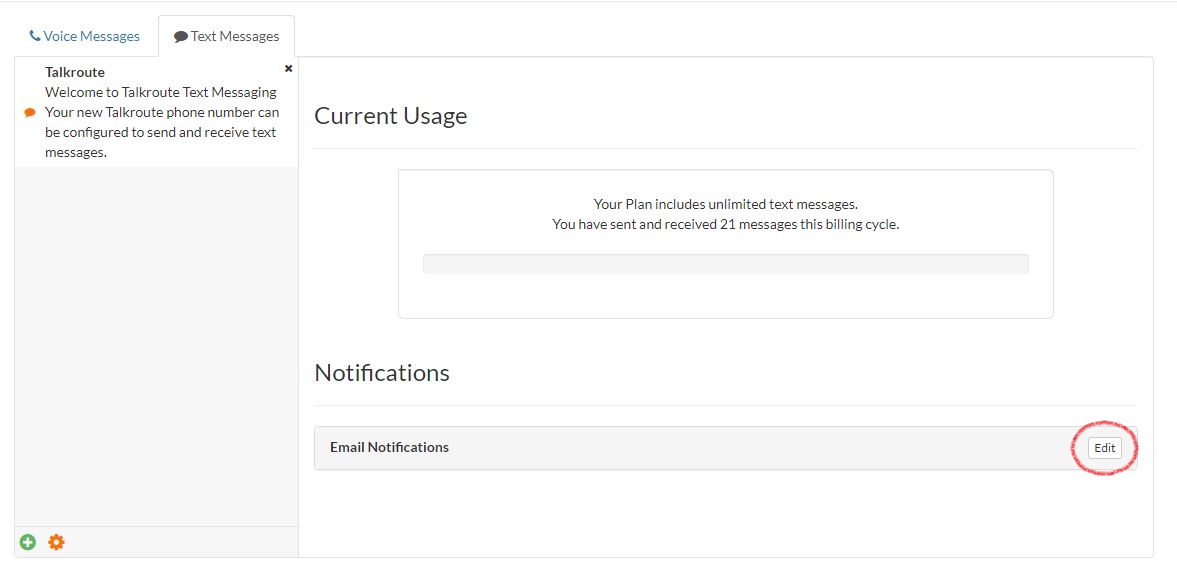 Log in to your Talkroute account and navigate to the Messages section.