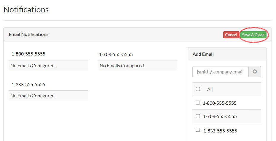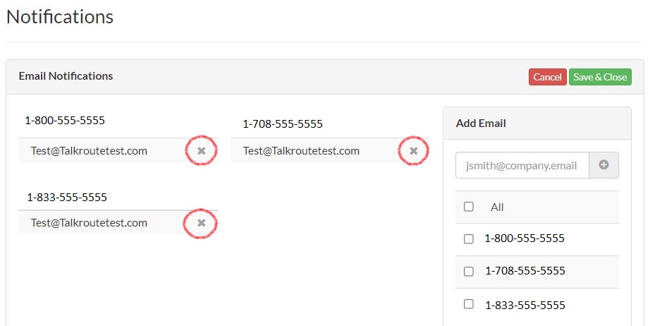 Click the X button to remove each email address.